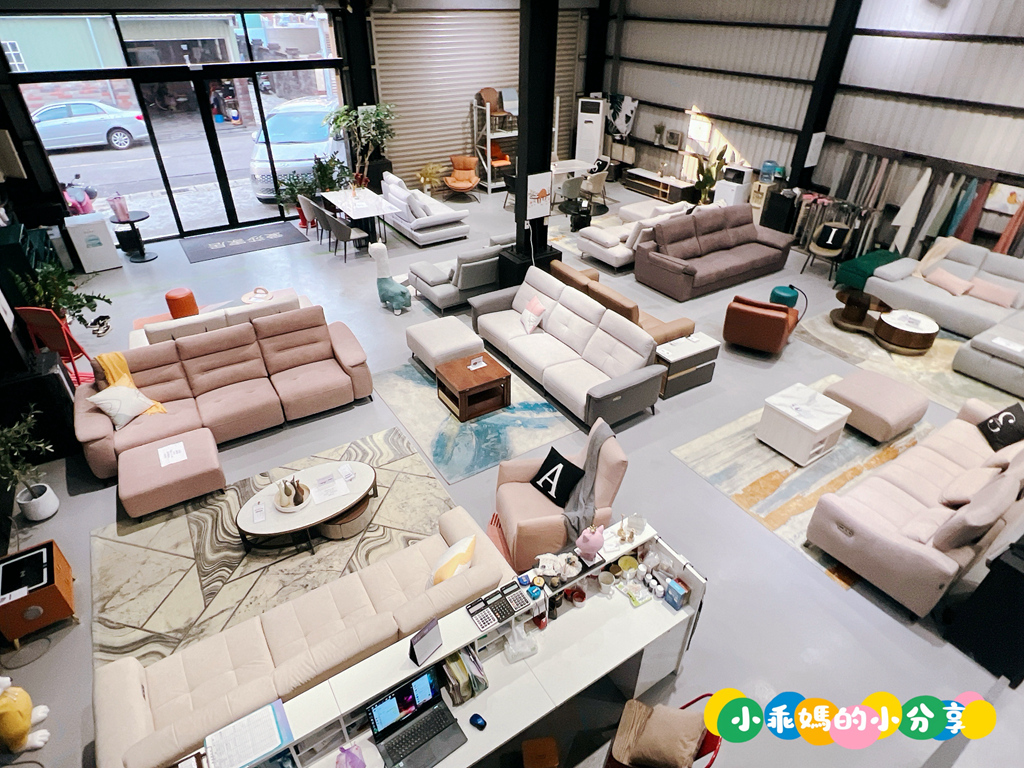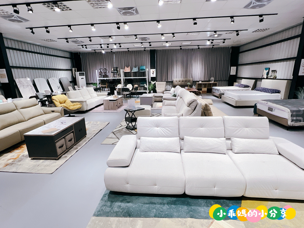愛莎家居的展示場非常大!現場提供各種款式的L型沙發、布沙發、貓抓皮沙發和獨立筒床墊,展廳分別有一樓跟二樓~