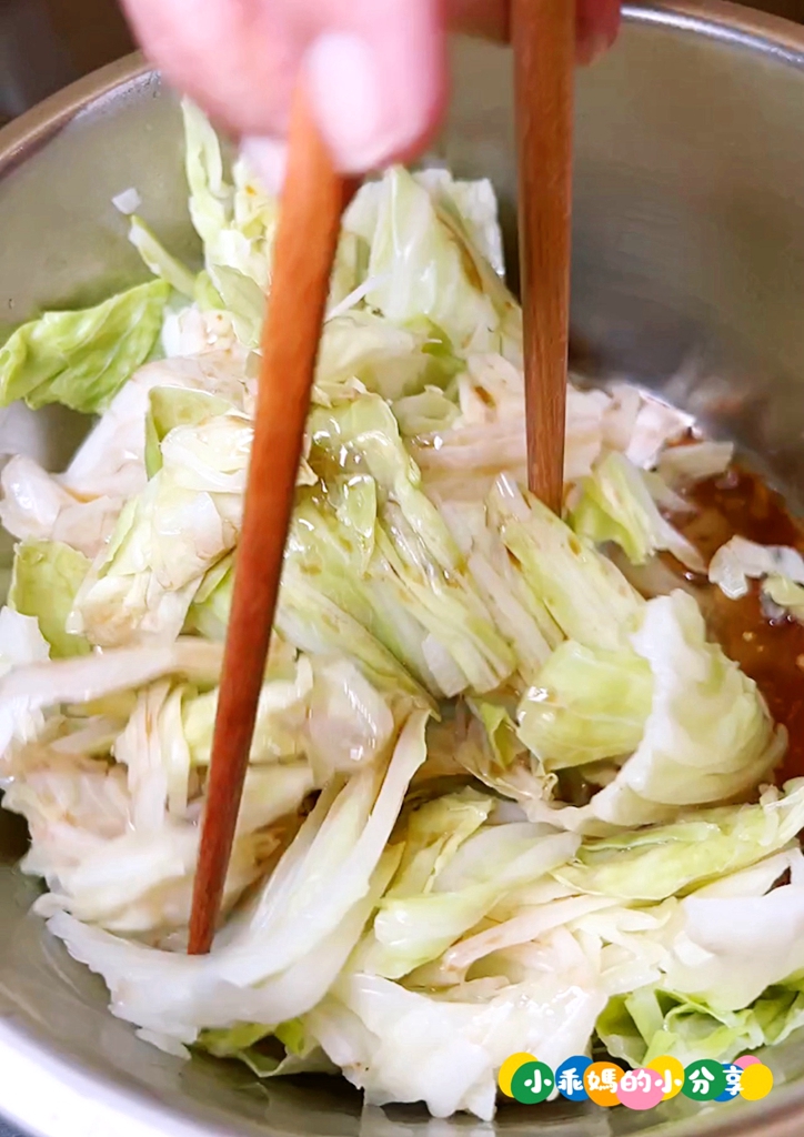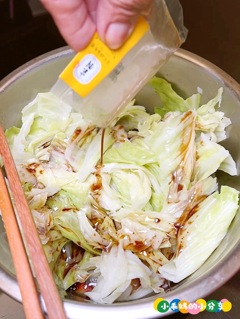 我直接燙好高麗菜,淋上一包玄羽雞蔥油,一拌開整個香氣爆棚~